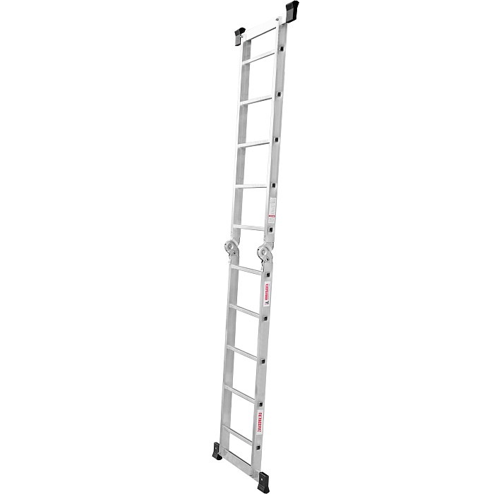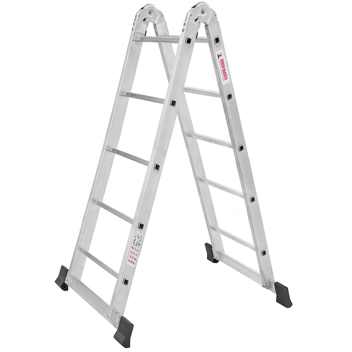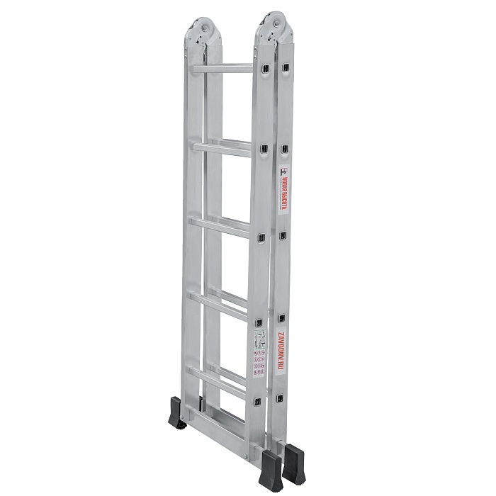 Шарнирная лестница «2 в 1» для бытового использования: двухсторонняя стремянка и приставная лестница. Компактность для хранения и транспортировки.