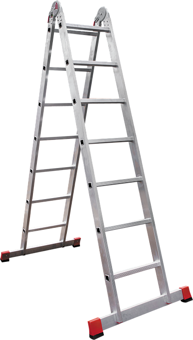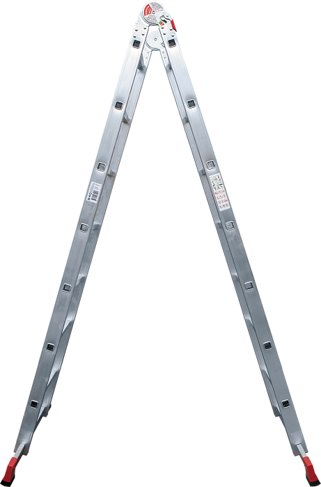 Высокопрочная шарнирная лестница "2 в 1": двухсторонняя стремянка и приставная лестница. Для интенсивного использования.