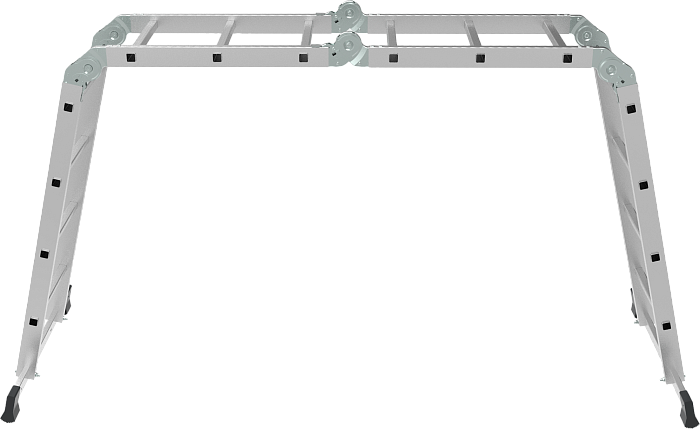 Шарнирная лестница «4 в 1» увеличенной ширины для бытового использования: приставная, Г-образная с опорой на стену, двухсторонняя стремянка, помост.