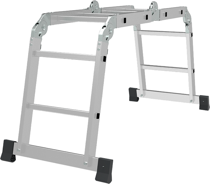 Шарнирная лестница «4 в 1» увеличенной ширины для бытового использования: приставная, Г-образная с опорой на стену, двухсторонняя стремянка, помост.
