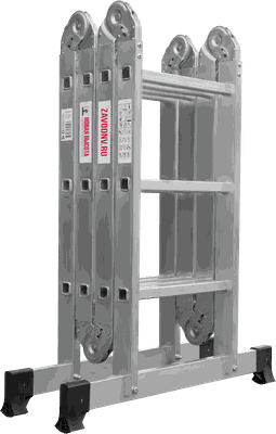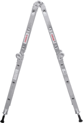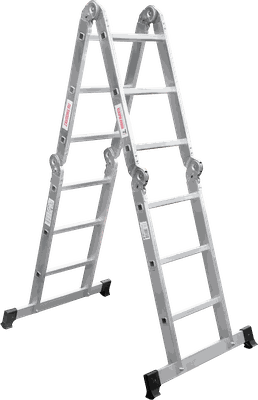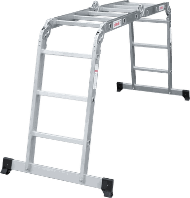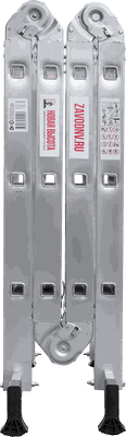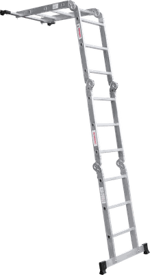 Шарнирная лестница «4 в 1» увеличенной ширины для бытового использования: приставная, Г-образная с опорой на стену, двухсторонняя стремянка, помост.