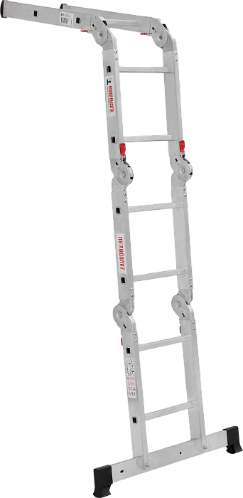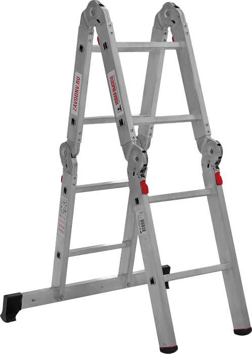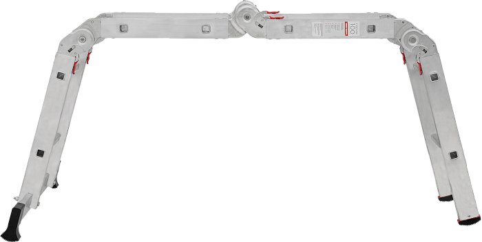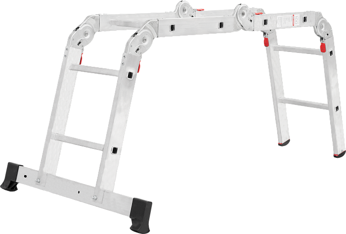 Шарнирная лестница «4 в 1» для бытового использования: приставная, Г-образная с опорой на стену, двухсторонняя стремянка, помост.