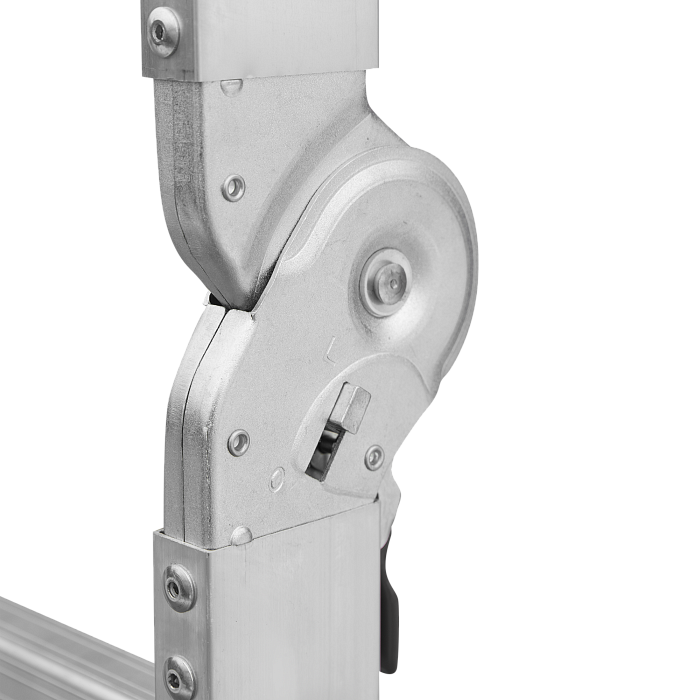 Шарнирная лестница «4 в 1» увеличенной ширины для бытового использования: приставная, Г-образная с опорой на стену, двухсторонняя стремянка, помост со съёмным настилом.