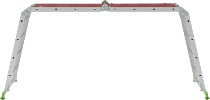 Многофункциональная улучшенная шарнирная лестница «4 в 1» увеличенной ширины для универсального использования с повышенными нагрузками: приставная, Г-образная с опорой на стену, двухсторонняя стремянка, помост со съёмным настилом.