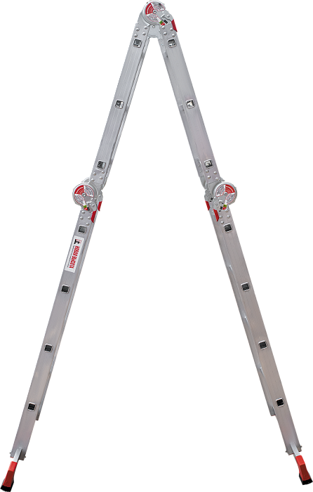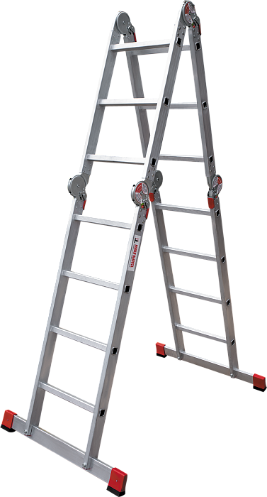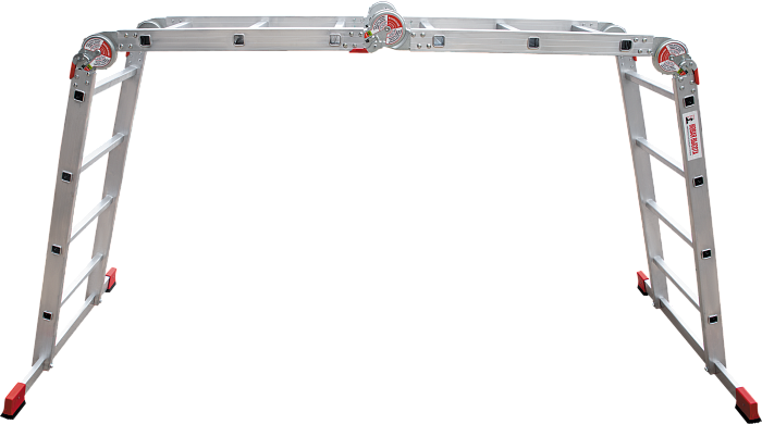 Профессиональная многофункциональная шарнирная лестница "4 в 1": приставная, Г-образная с опорой на стену, двухсторонняя стремянка, помост. Увеличенная ширина для свободы перемещений.