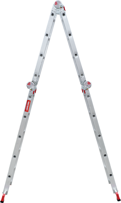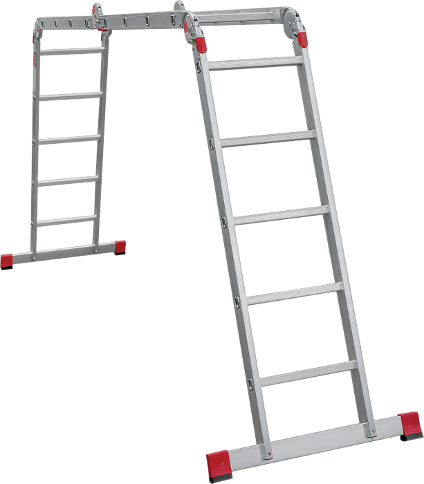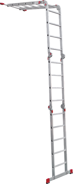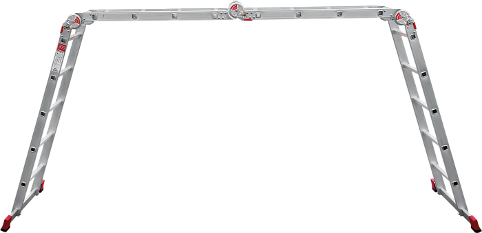 Профессиональная многофункциональная шарнирная лестница "4 в 1": приставная, Г-образная с опорой на стену, двухсторонняя стремянка, помост.  Увеличенная ширина для свободы перемещений.