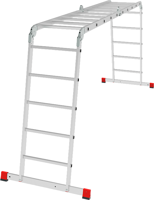 Профессиональная многофункциональная шарнирная лестница "4 в 1": приставная, Г-образная с опорой на стену, двухсторонняя стремянка, помост. Увеличенная ширина для свободы перемещений.