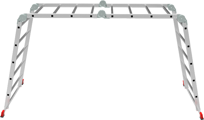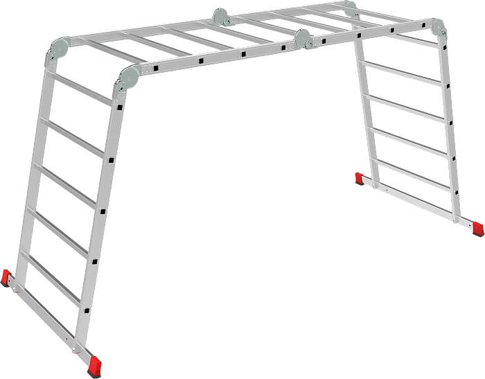 Профессиональная многофункциональная шарнирная лестница "4 в 1": приставная, Г-образная с опорой на стену, двухсторонняя стремянка, помост. Больше пространства для свободы перемещений. Используется как рабочий стол.