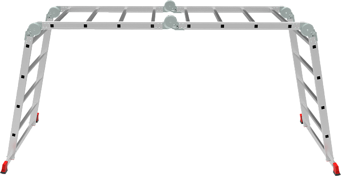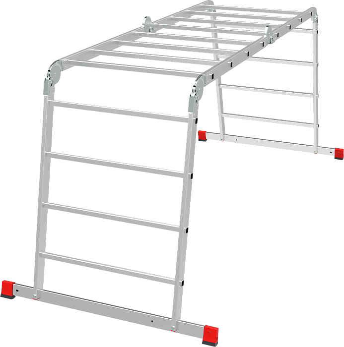 Профессиональная многофункциональная шарнирная лестница "4 в 1": приставная, Г-образная с опорой на стену, двухсторонняя стремянка, помост. Больше пространства для свободы перемещений. Используется как рабочий стол.