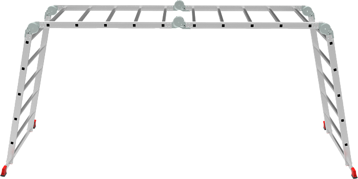 Профессиональная многофункциональная шарнирная лестница "4 в 1": приставная, Г-образная с опорой на стену, двухсторонняя стремянка, помост. Больше пространства для свободы перемещений. Используется как рабочий стол.