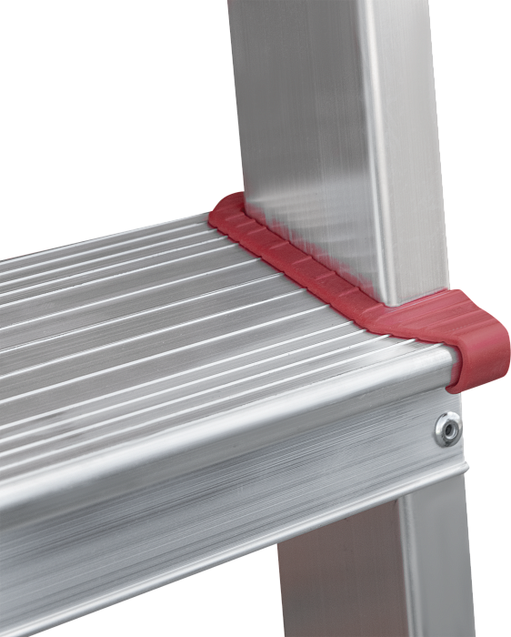 - Рифлёные развальцованные ступени глубиной 80 мм (евростандарт) с жёстким алюминиевым профилем в основании для надёжного сцепления.