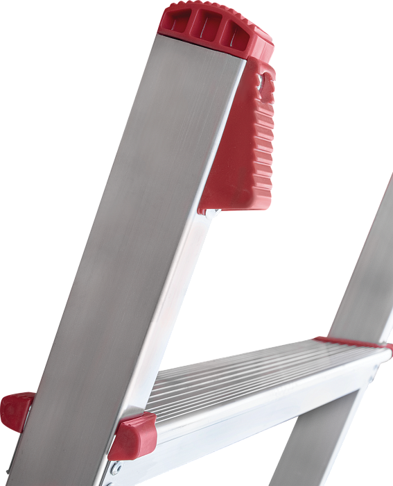 - Башмаки стоек сверху и снизу лестницы и траверсы из 2х-компонентного пластика с прорезиненной опорой. Не скользят и не повреждают поверхность