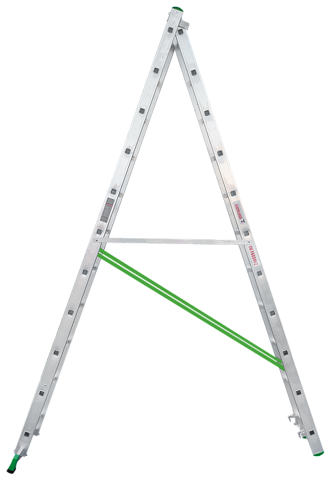 - Алюминиевая стяжка в положении «Стремянка» создает жёсткую конструкцию и фиксирует рабочее положение.