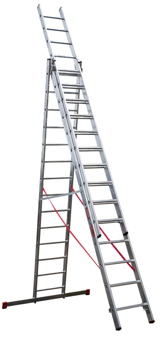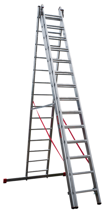 Высокопрочная лестница «5 в 1» усиленной конструкции: приставная, выдвижная, двухсторонняя стремянка, стремянка с выдвижной секцией, лестничный марш. Для интенсивного использования.