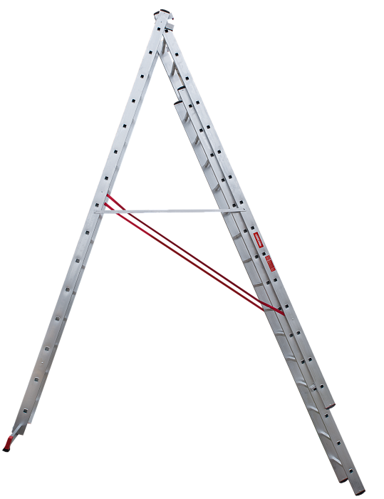 Высокопрочная лестница «5 в 1» усиленной конструкции: приставная, выдвижная, двухсторонняя стремянка, стремянка с выдвижной секцией, лестничный марш. Для интенсивного использования.