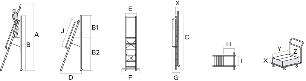 • Колёса диаметром 75 мм для лёгкого перемещения стремянки одним человеком.