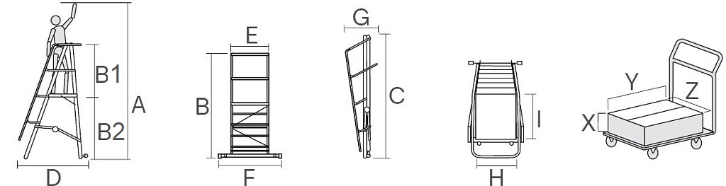 Передвижная двухсторонняя лестница-подмости NV 5522