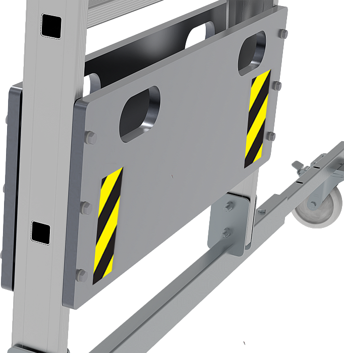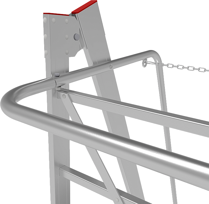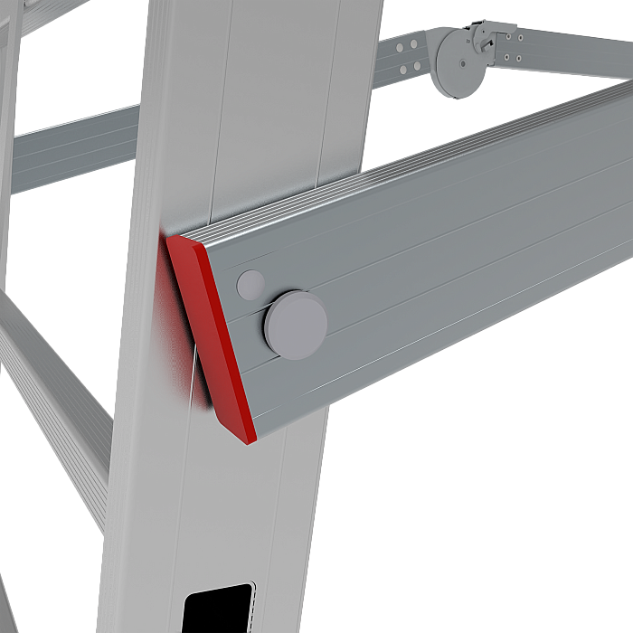 - Широкая усиленная телескопическая опорная траверса стабилизирует лестницу (в комплекте для лестниц 1х10–1х12).