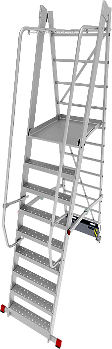 Мобильные подмости для коллективного использования с интенсивными нагрузками снаружи и внутри помещений. Незаменимы для работы на складских стеллажах.