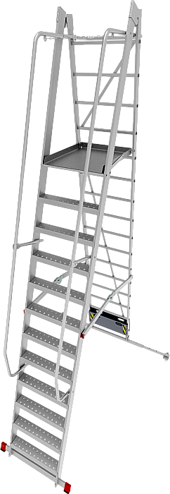 - Широкая усиленная телескопическая опорная траверса стабилизирует лестницу (в комплекте для лестниц 1х10–1х12).
