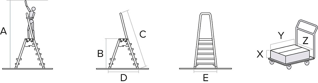 Для профессиональных чистовых работ, обслуживании оборудования и уборки общественных помещений. С широкой рабочей площадкой 260х350 мм. Ступени глубиной 130 мм. Соответствует ГОСТ Р 58752-2019.