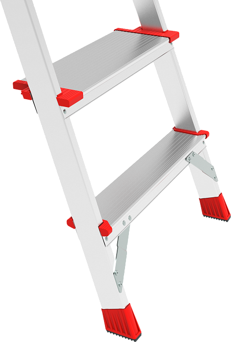• Место для отдыха и дополнительная опорная ступень 130 мм на заднем каркасе. Стабилизируют стремянку.