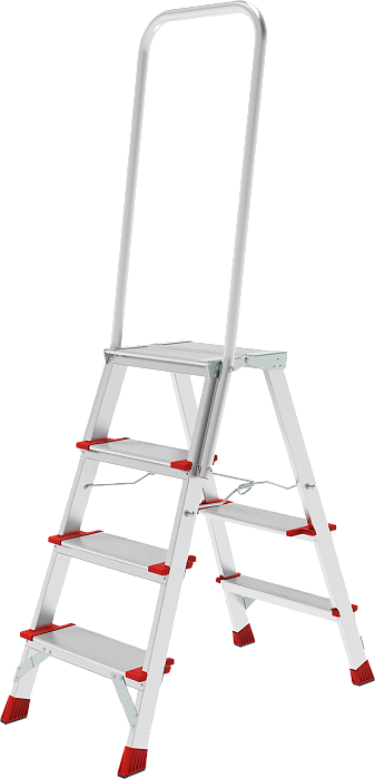 Высокопрочная стремянка с увеличенным радиусом работы и точкой опоры под рукой. Широкие ступени снижают утомляемость и повышает производительность. Чистота рук и рабочих поверхностей.