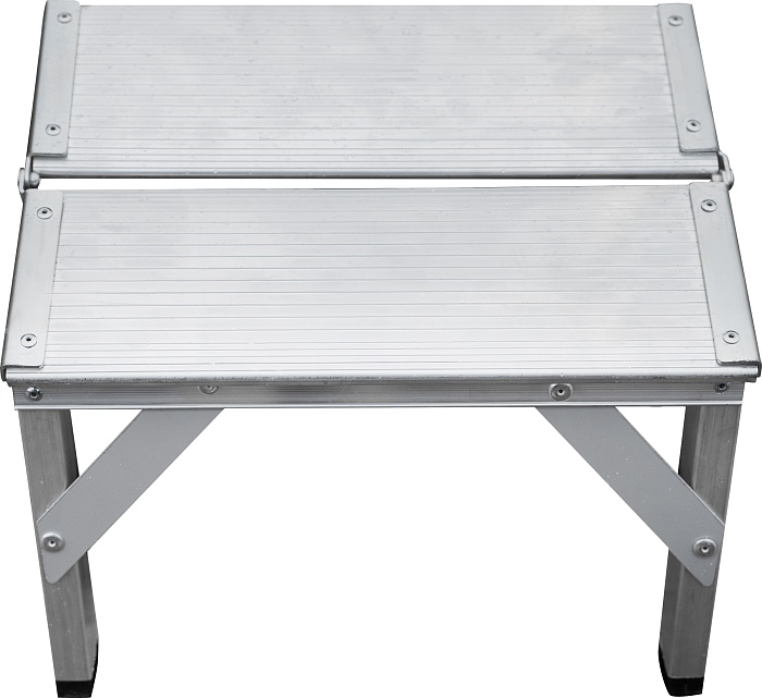 - Большая алюминиевая складная площадка 350х260 мм из 2 ступеней. Увеличенный радиус работы.
