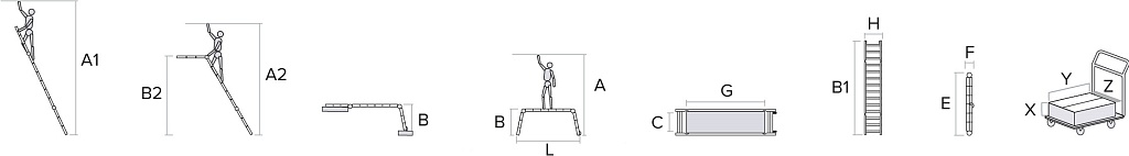 Складные профессиональные строительные подмости "3 в 1" для коллективных работ, требующих большой площадки. Помост с металлическим настилом, приставная и Г-образная лестница с опорой на стену.