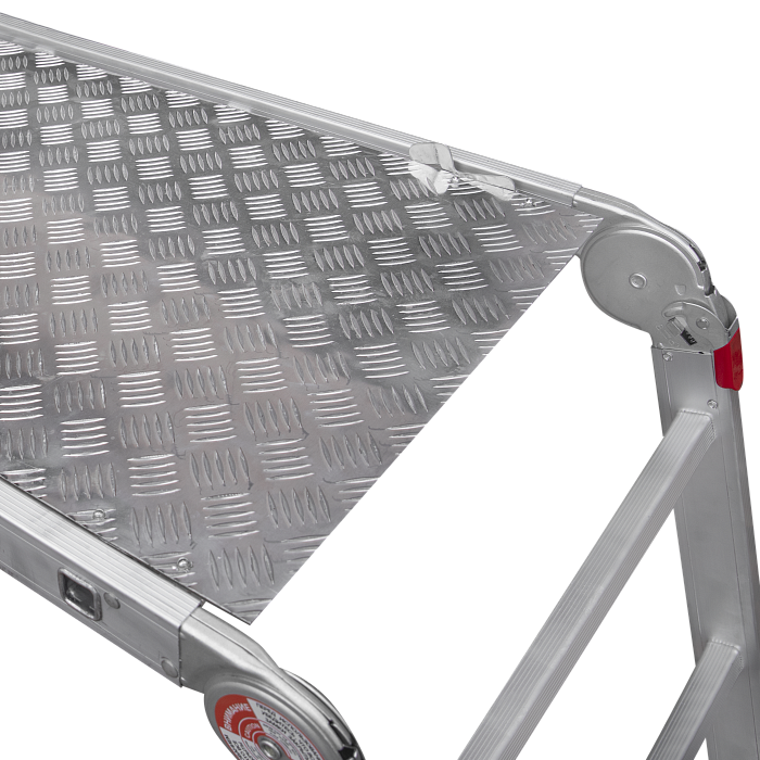 - Большой нескользящий настил из рифленого алюминиевого листа шириной 500 мм.  Алюминиевый настил стоек к механическим, химическим, атмосферным воздействиям. Не коррозирует, легко очищается.