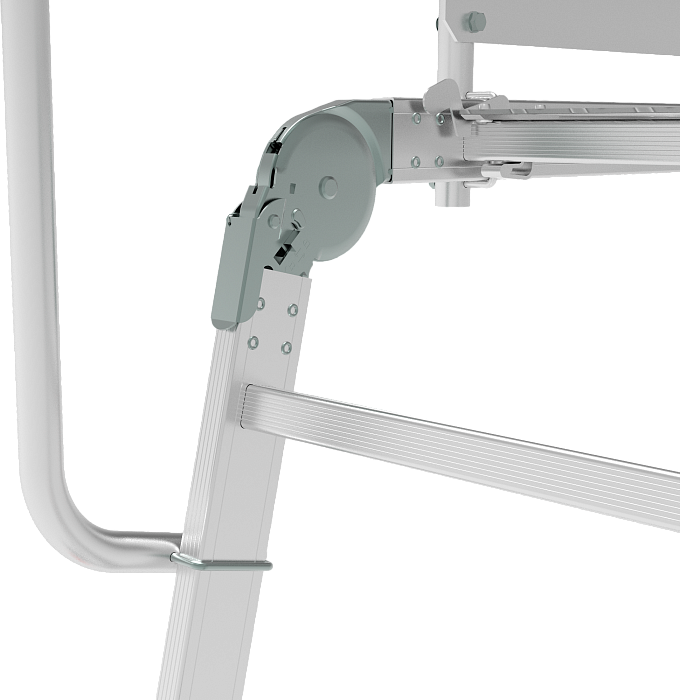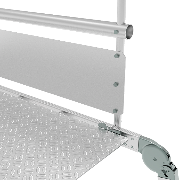 - Съёмный настил из рифлёного алюминиевого листа для работы в положении «Помост» в комплекте. Алюминиевый настил стоек к механическим, химическим, атмосферным воздействиям. Не коррозирует, легко очищается.