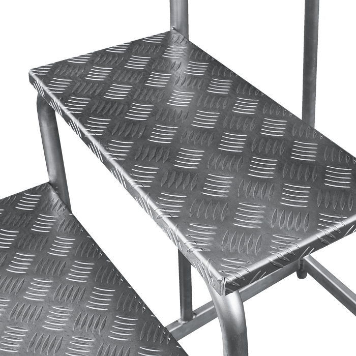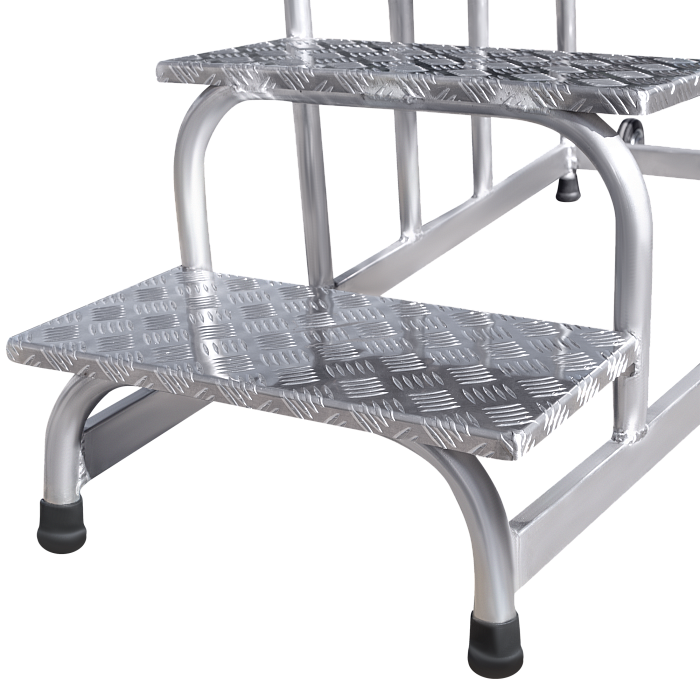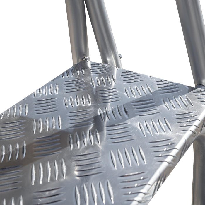 - Широкие ступени – площадки 240 мм из рифлёного алюминиевого листа для надёжного сцепления.