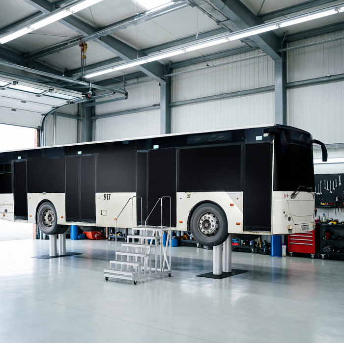 Мобильные алюминиевые трапы позволяют работникам сервисных служб без труда получать доступ в салон коммерческого транспорта. Возможность одновременного ведения ремонтных работ как во вне, так и внутри салона позволяет сокращать время на ремонтные работы.