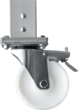 4 поворотных колёсных опоры диаметром 125 мм с фиксацией угла поворота и тормозом для перемещения одним человеком.