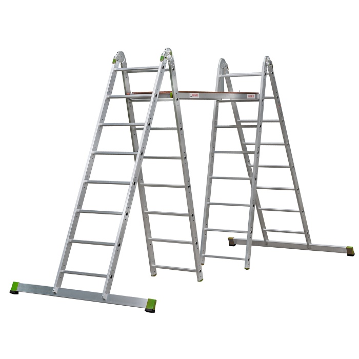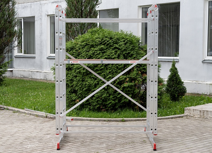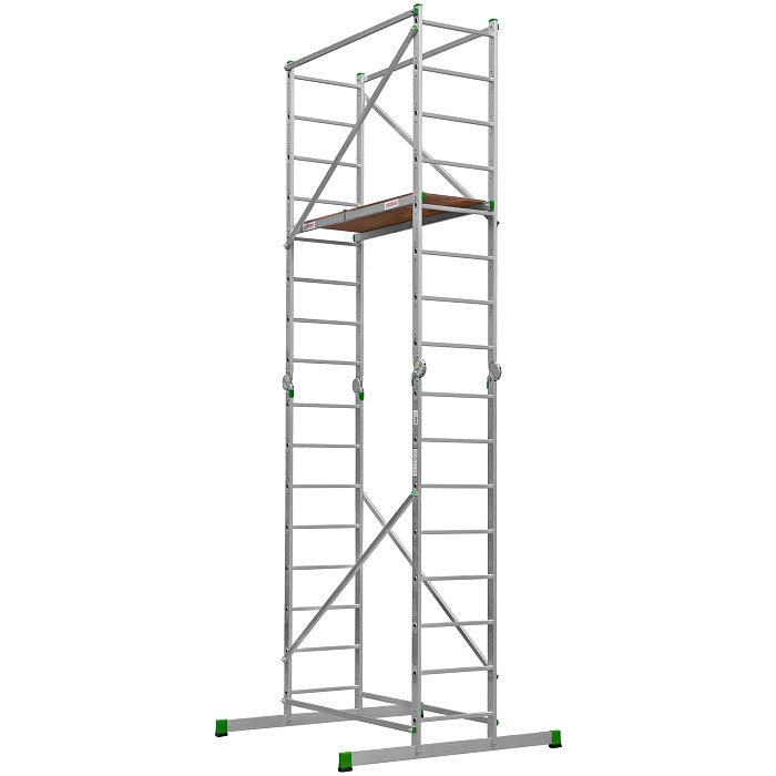 Многофункциональная вышка-тура 5-в-1: вышка малая, вышка большая, 2 лестницы, 2 стремянки, подмости. Рабочая высота до 5,44 м. Максимальная нагрузка до 150 кг.
