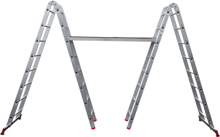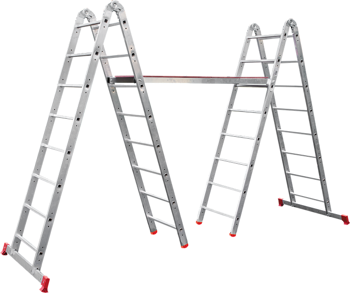 Многофункциональная вышка-тура 5-в-1: вышка малая, вышка большая, 2 лестницы, 2 стремянки, подмости. Рабочая высота до 4,4 м. Максимальная нагрузка до 150 кг.