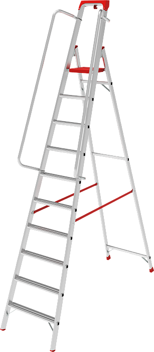 Съёмные поручни. Органайзером для 14 инструментов, цельнотянутая стальная площадка и развальцованные ступени глубиной 80 мм.