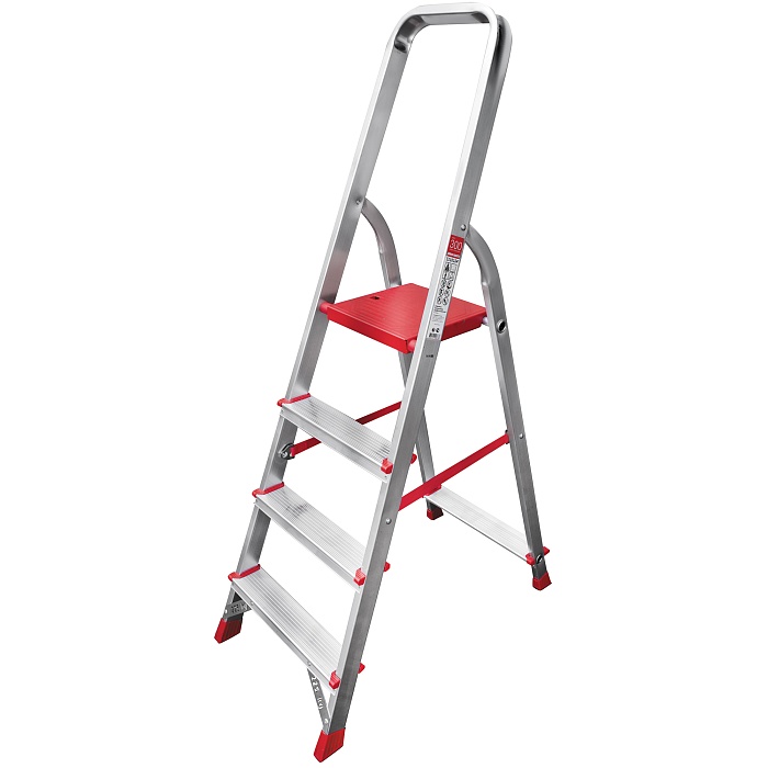 Лёгкая высокопрочная стремянка для интенсивного профессионального использования. Стойки и ступени из экструдированного алюминиевого профиля.