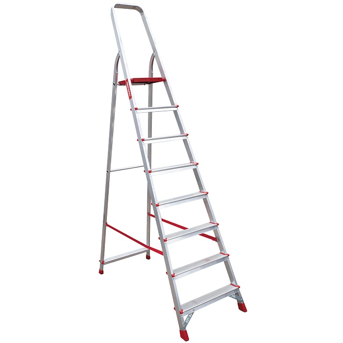 Лёгкая высокопрочная стремянка для интенсивного профессионального использования. Стойки и ступени из экструдированного алюминиевого профиля.