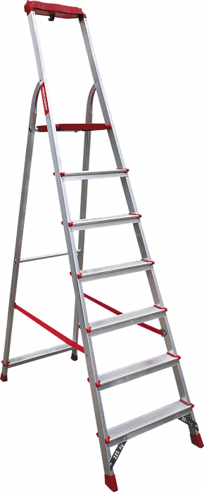 Лёгкая высокопрочная стремянка для интенсивного профессионального использования. Инструмент всегда под рукой. Чистота рук и рабочих поверхностей. Стойки переднего и заднего каркаса из анодированного алюминиевого профиля.