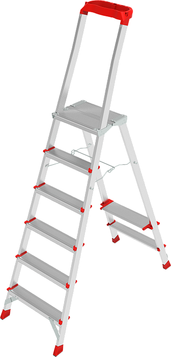 Лёгкая высокопрочная стремянка для интенсивного использования с увеличенным радиусом работы на высоте. Инвентарь всегда под рукой.