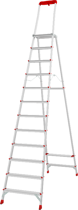 Лёгкая высокопрочная стремянка для интенсивного использования с увеличенным радиусом работы на высоте. Инвентарь всегда под рукой.