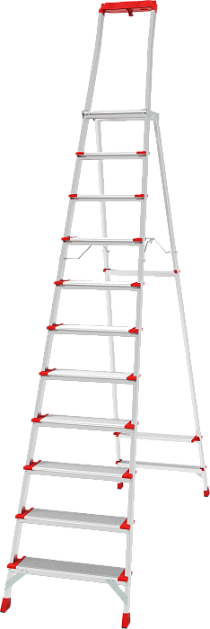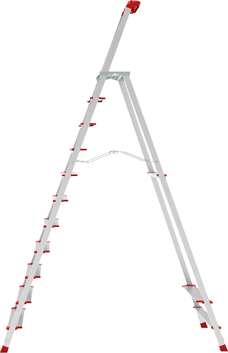 Высокопрочная стремянка для интенсивного использования с увеличенным радиусом работы. Низкая утомляемость, высокая производительность. Инвентарь всегда под рукой.