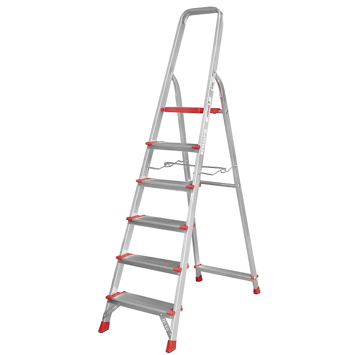 Высокопрочная лёгкая стремянка с глубокими ступенями 130 мм, цельнотянутой стальной площадкой и высокой дугой безопасности для интенсивной работы. Максимальная нагрузка 225 кг.