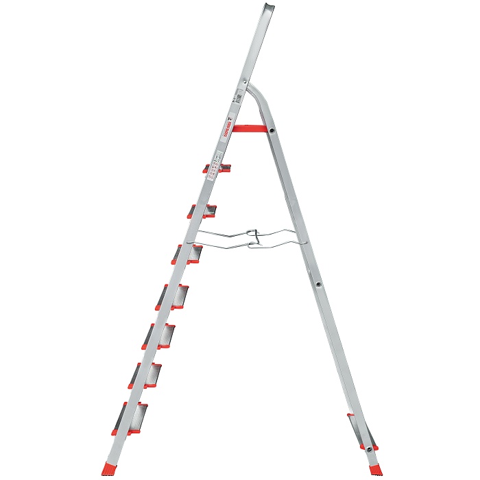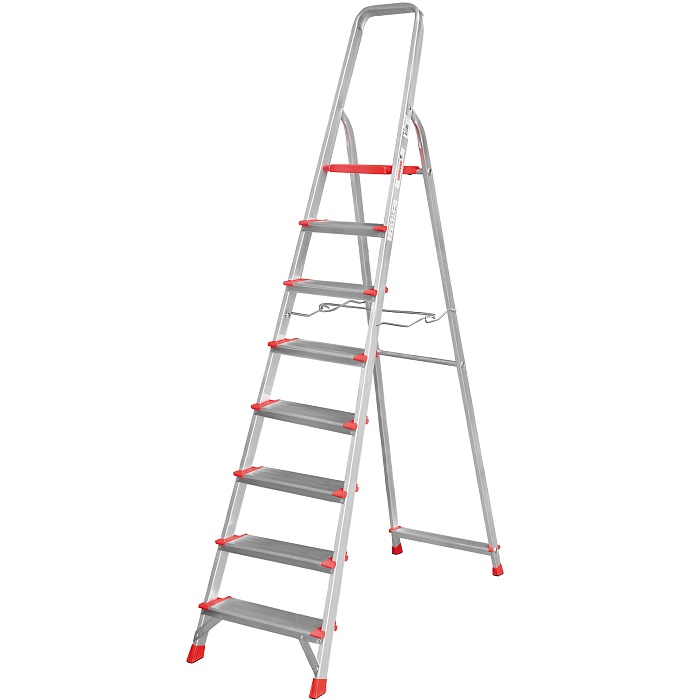 Высокопрочная лёгкая стремянка с глубокими ступенями 130 мм, цельнотянутой стальной площадкой и высокой дугой безопасности для интенсивной работы. Максимальная нагрузка 225 кг.