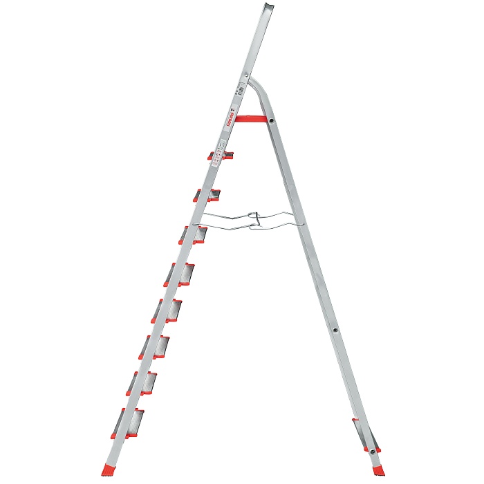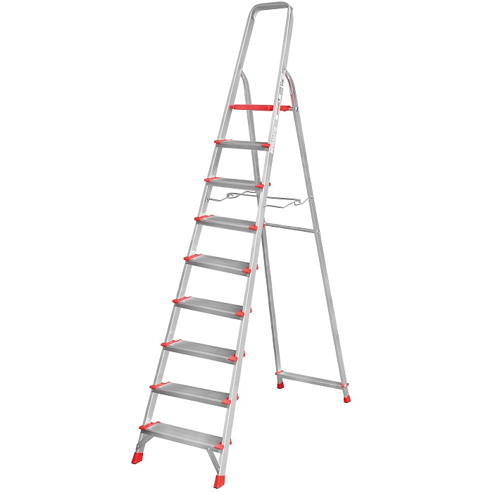 Высокопрочная лёгкая стремянка с глубокими ступенями 130 мм, цельнотянутой стальной площадкой и высокой дугой безопасности для интенсивной работы. Максимальная нагрузка 225 кг.