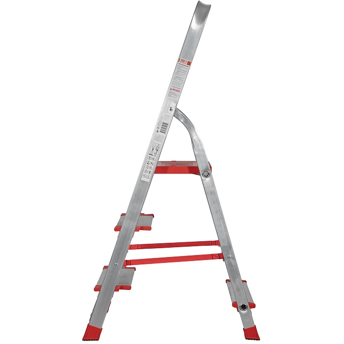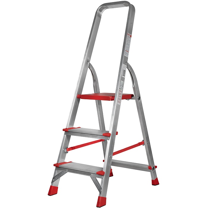 Высокопрочная лёгкая стремянка с глубокими ступенями 130 мм, цельнотянутой стальной площадкой и высокой дугой безопасности для интенсивной работы.