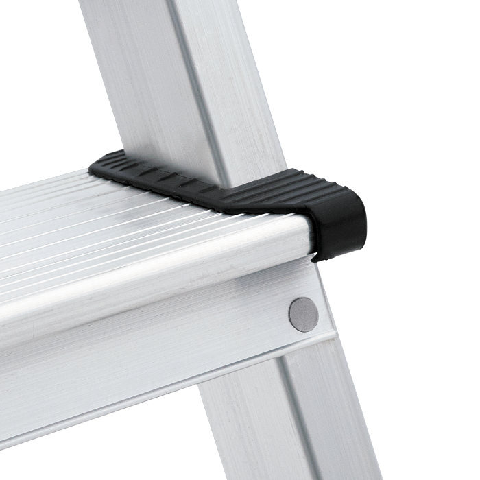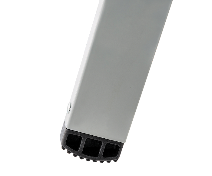 -Усиленное крепление стоек заднего каркаса с развальцовкой и дополнительной раздувкой стальных трубок диаметром 16 мм для стремянок от 3 до 8 ступеней и 20 мм для стремянок на 9 и 10 ступеней. Повышает устойчивость стремянки.
