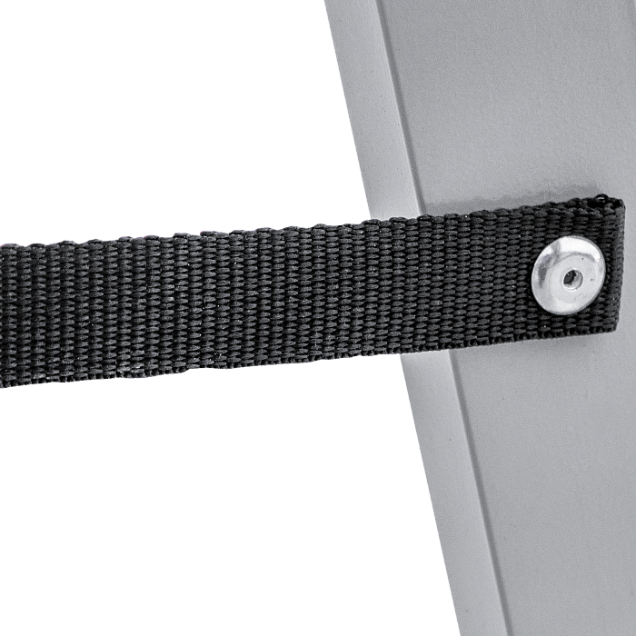 - Страховочные погодоустойчивые ремни на заклёпках с увеличенной шляпкой (комплектуются стремянки с 5 до 10 ступеней). Создают жёсткую конструкцию. Не гниют и не выгорают.