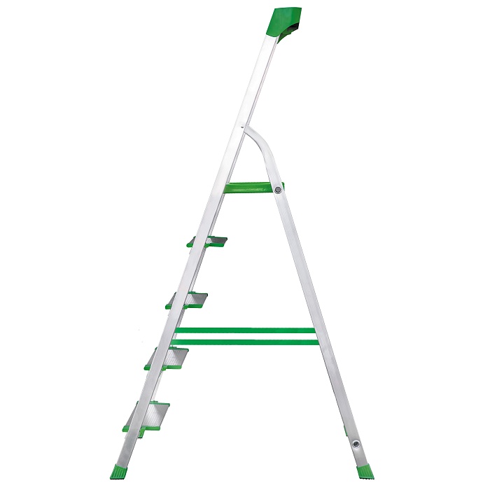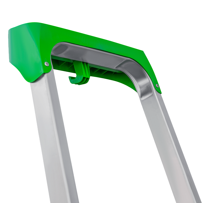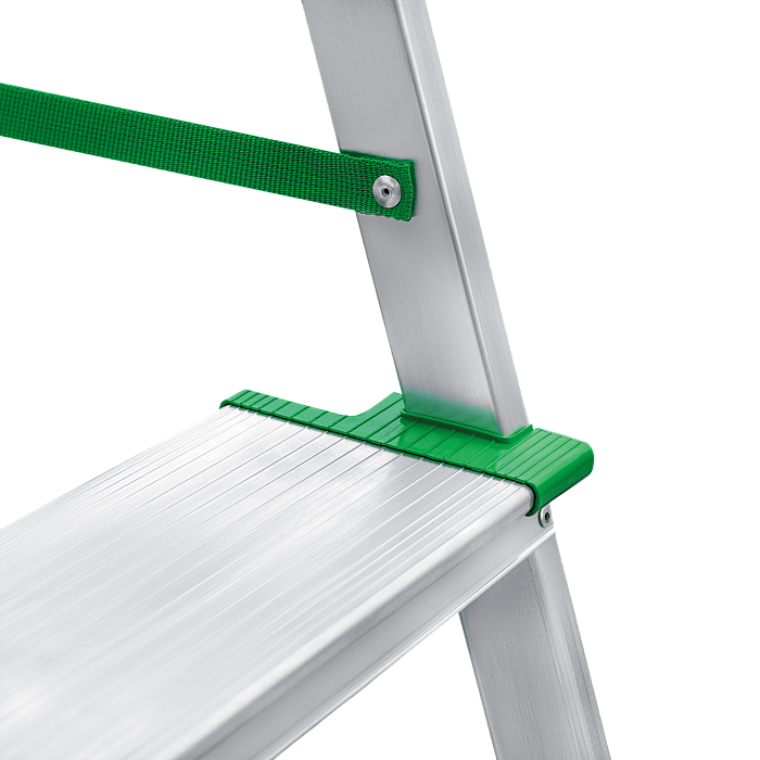 Усиленная стремянка для бытовых работ с органайзером, цельнотянутой стальной площадкой, высокой дугой безопасности и ступенями глубиной 130 мм.